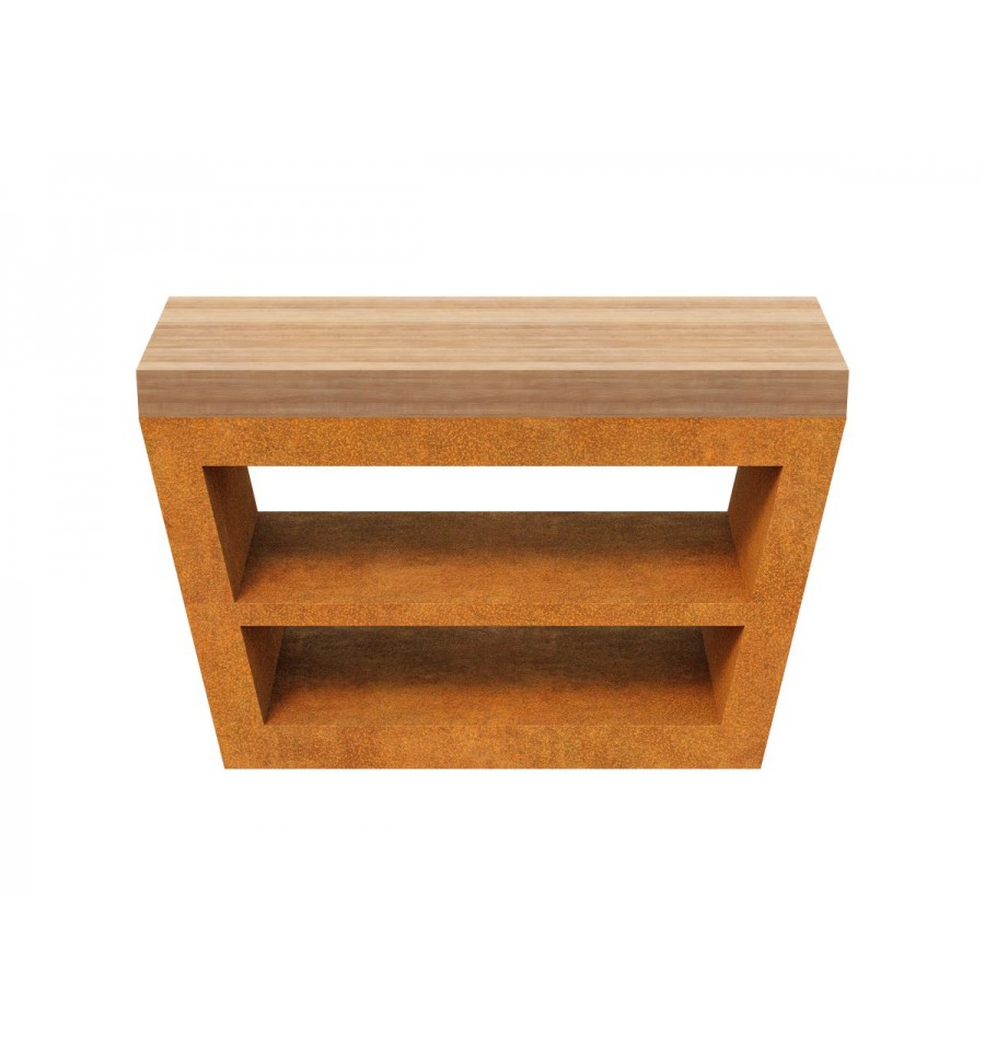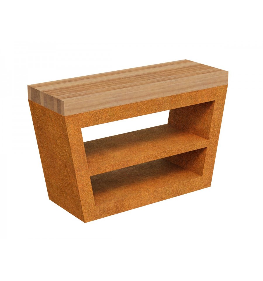 MESA 2 er et mellemstor geometrisk bord lavet af Cortenstål. Den komplementerer COCCINA-serien perfekt med en ekstra bordplade, en hylde til tilbehør eller et sted til brænde. Standard udstyret med justerbare ben, men det er muligt at montere hjul for at gøre bordet mere mobilt. Den er perfekt til smagninger, præsentationer, festivaler eller blot på terrassen eller i haven.