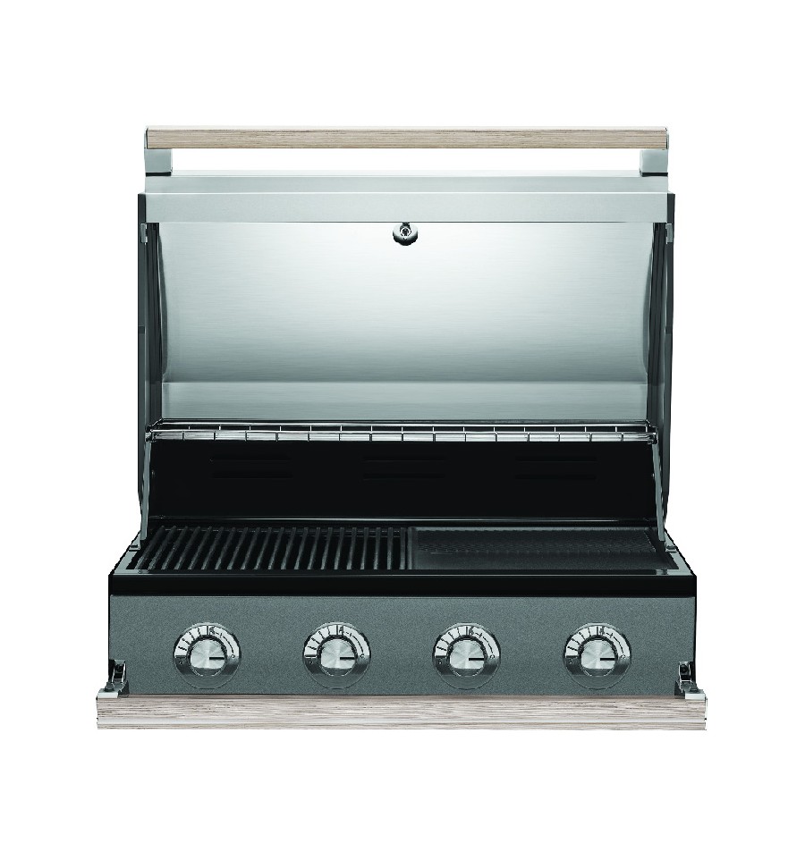 Denne moderne australske Barbecue fra 1500 serien, kommer med et helt nyt design. Kontrolpanelet er skjult når grillen ikke er i brug. Frontpanelet klappes ned når grillen skal bruges, og fungerer hermed som ekstra hylde til afsætning. Modellen leveres både til indbygning eller med underskabe i rustfrit stål. Låget er med dobbelt lag og har integreret temperaturmåler. Din familie og venner vil elske de saftige og sprøde retter du kan lave på denne BBQ.