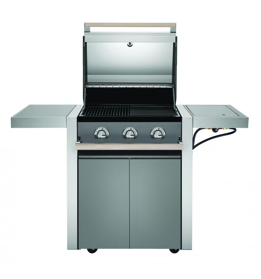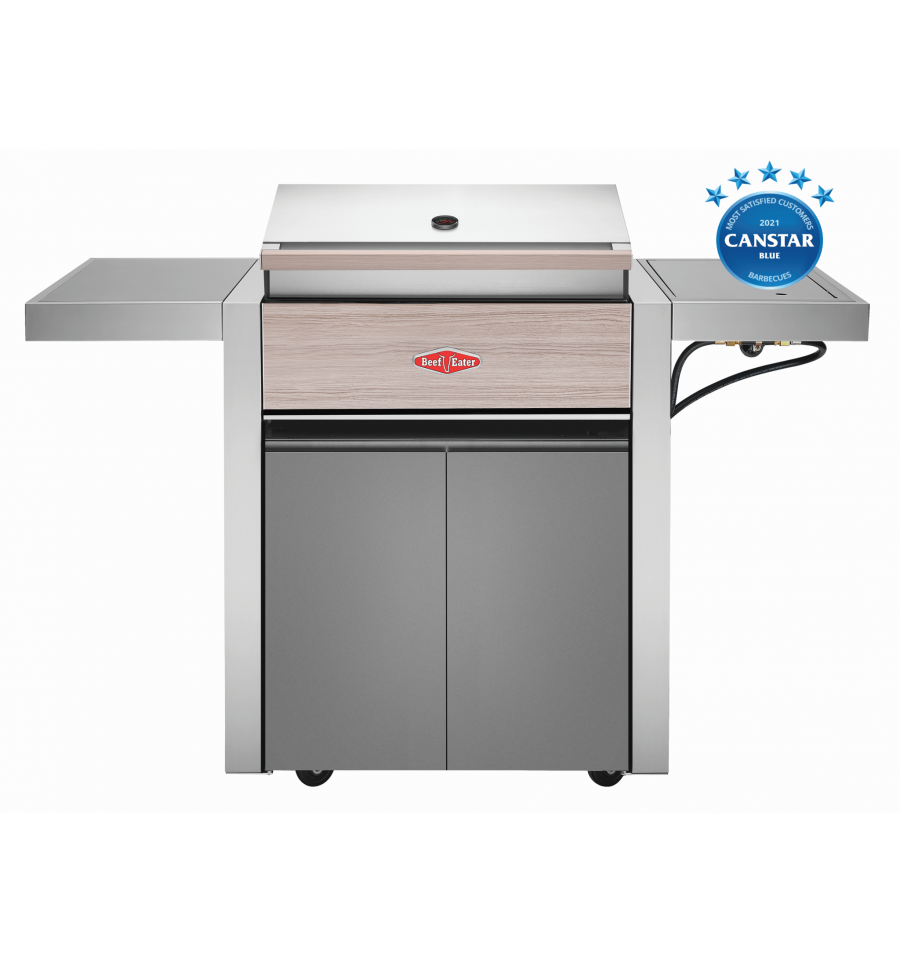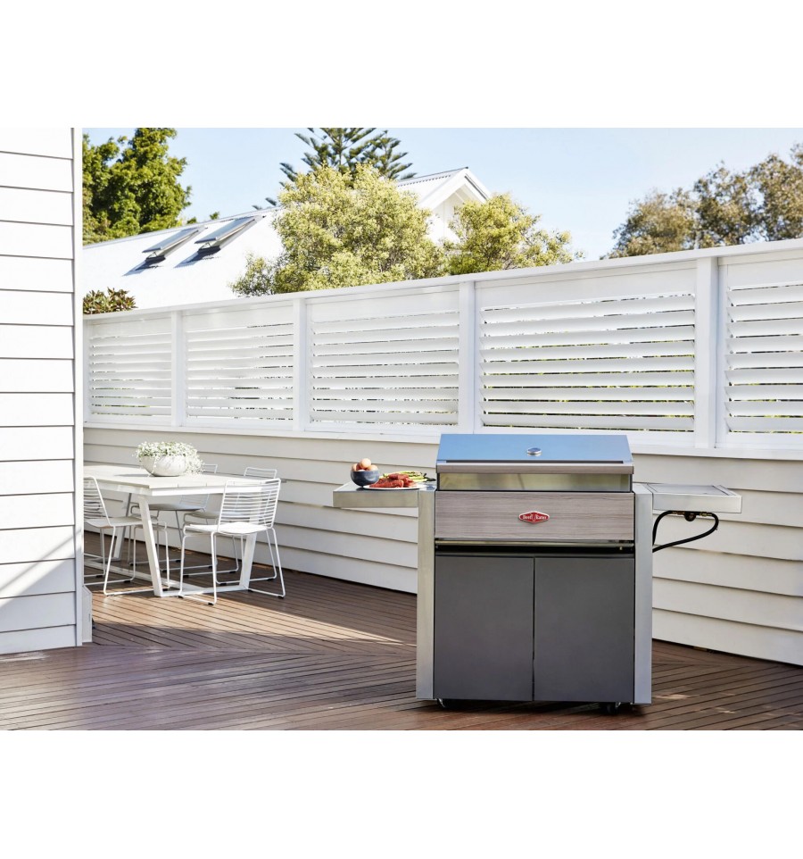 Denne moderne australske Barbecue fra 1500 serien, kommer med et helt nyt design. Kontrolpanelet er skjult når grillen ikke er i brug. Frontpanelet klappes ned når grillen skal bruges, og fungerer hermed som ekstra hylde til afsætning. Modellen leveres både til indbygning eller med underskabe i rustfrit stål. Låget er med dobbelt lag og har integreret temperaturmåler. Din familie og venner vil elske de saftige og sprøde retter du kan lave på denne BBQ.