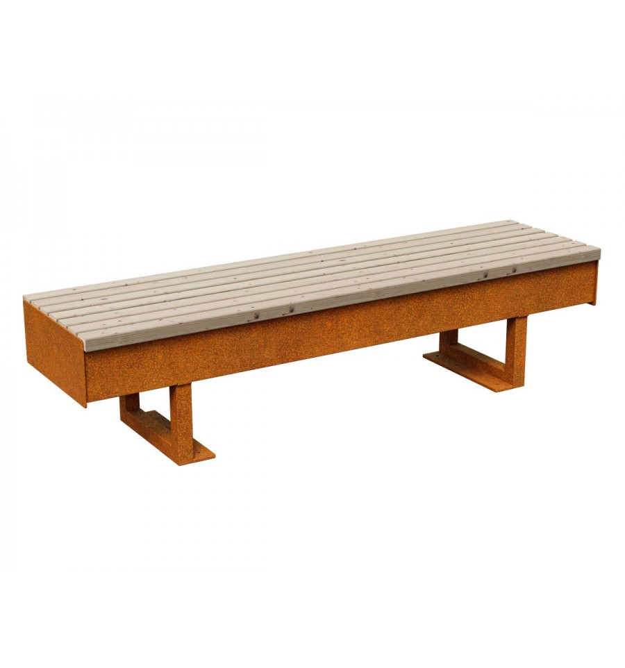 GORDO 4 have-/bybænk er en solid havebænk, lavet af 5 mm Cortenstål. Som standard kommer den med sæde af grantræ, som blev lakeret to gange med vores specielle mat lak. Bænken er udstyret med huller for en let montering i undergrunden.