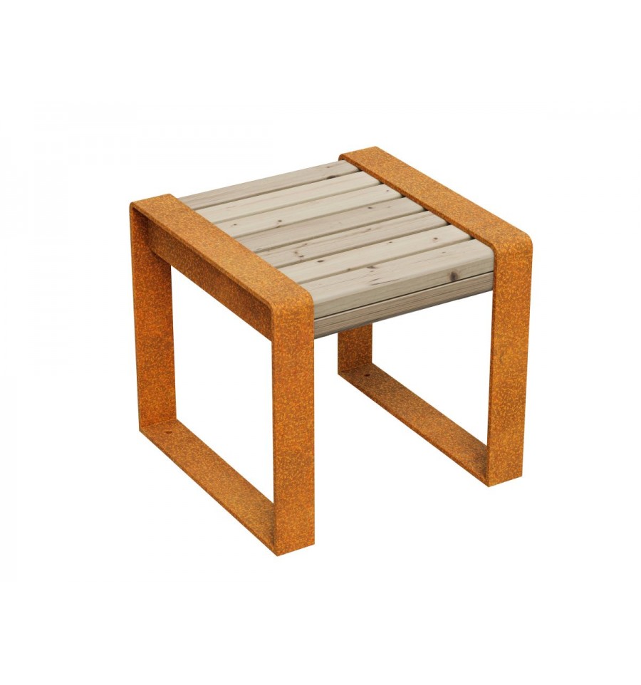 MARCO 1 have-/bybænk er en solid havebænk, lavet af 10 mm Cortenstål. Som standard kommer den med sæde af grantræ, som blev lakeret to gange med vores specielle mat lak. Bænken er udstyret med huller for en let montering i undergrunden.