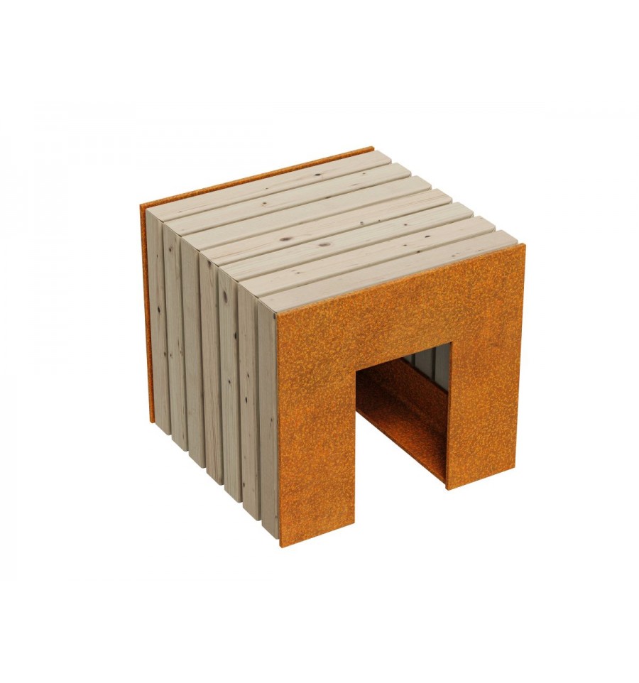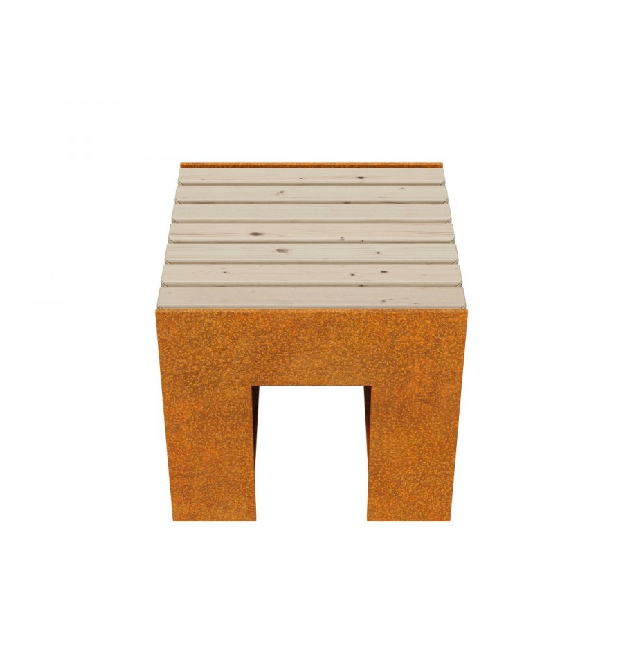 MASETA 1 have-/bybænk er en solid havebænk, lavet af 10 mm Cortenstål. Som standard kommer den med sæde af grantræ, som blev lakeret to gange med vores specielle mat lak. Bænken er udstyret med huller for en let montering i undergrunden.