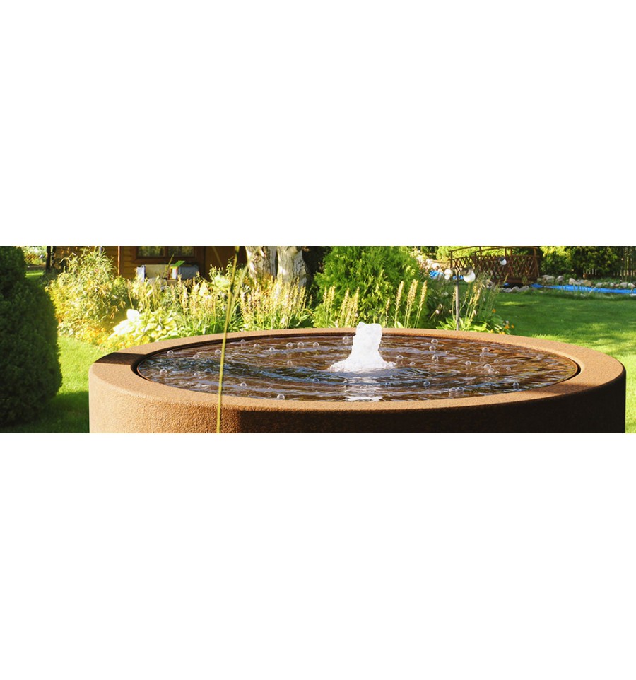 FUENTE FFZ1 er en have-/vandfontæne med lukket kredsløb til placering i undergrunden. Den er lavet af 2 mm tykt cortenstål. Springvand lavet af cortenstål er meget holdbare og kræver ingen vedligeholdelse. Sættet indeholder en højkvalitets vandpumpe, og der er indbygget LED-lys med dyse i den øverste del. Sættet er helt klar til brug - det eneste du skal gøre er at hælde vand i tanken og tilslutte stikket til strømforsyningen.
