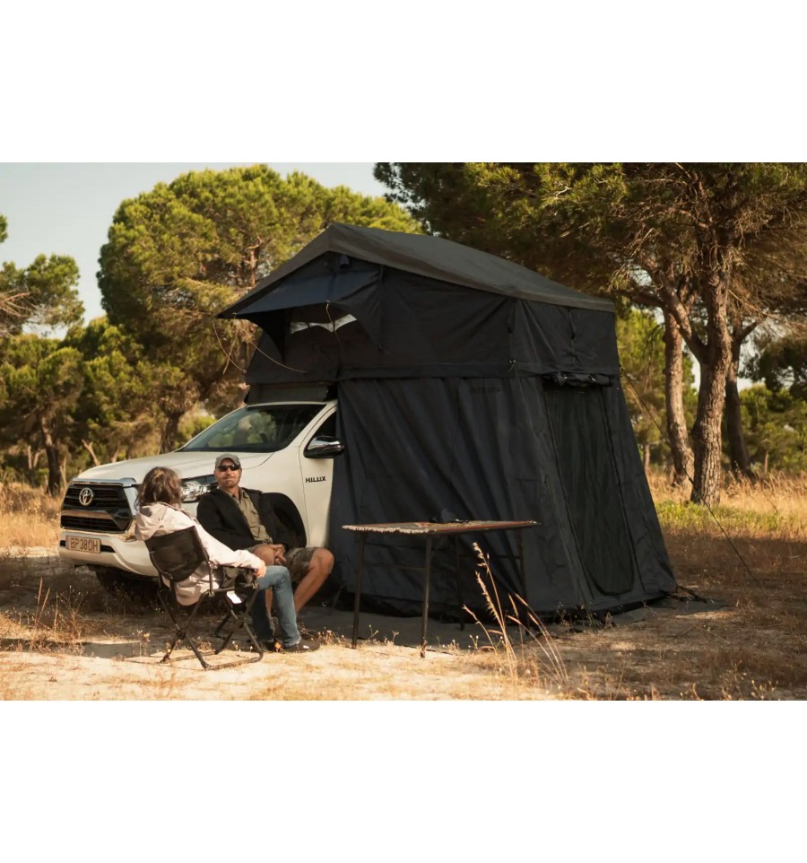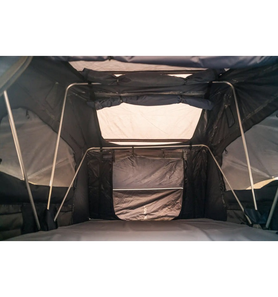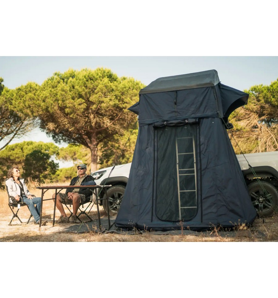 - RODIN PRO/BASE: Med Rodin-serien træder vi ind i en helt unik liga af tagtelte. Disse telte kombinerer den mindst mulige størrelse, når de er lukket, de enorme dimensioner, når de er åbne, og robustheden af deres aluminiumskonstruktion. Derudover kommer den store rumfornemmelse, som yderligere forstærkes af den indvendige højde. Et sandt familietelt.