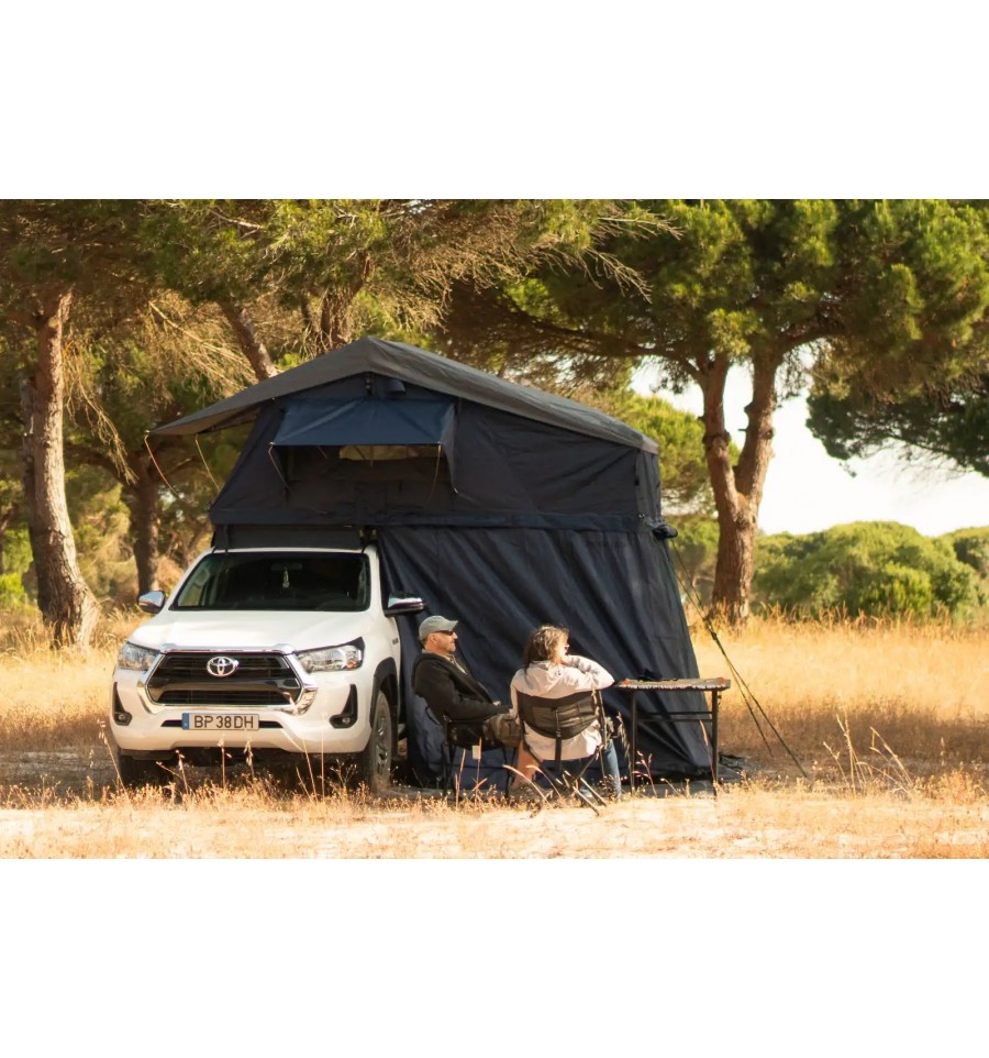 - Pop-up-telte eller softshell-telte, f.eks. WASTELAND og EXTENDED er kendetegnet ved en god rumfornemmelse på grund af ryghøjden. Disse telte er relativt lette og kompakte, når de er lukkede, hvilket gør dem velegnede til mange køretøjer.