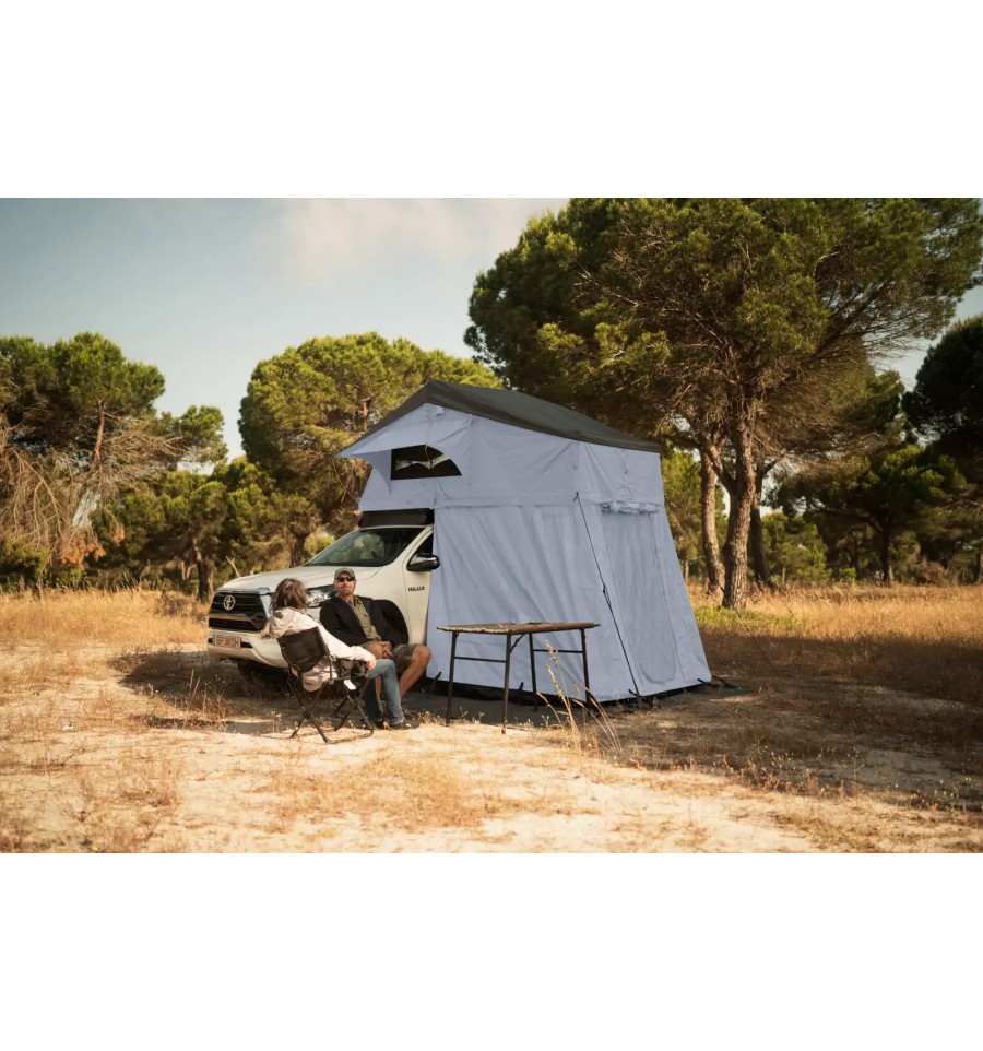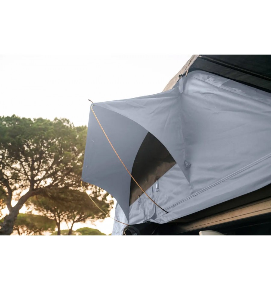 - RODIN PRO/BASE: Med Rodin-serien træder vi ind i en helt unik liga af tagtelte. Disse telte kombinerer den mindst mulige størrelse, når de er lukket, de enorme dimensioner, når de er åbne, og robustheden af deres aluminiumskonstruktion. Derudover kommer den store rumfornemmelse, som yderligere forstærkes af den indvendige højde. Et sandt familietelt.