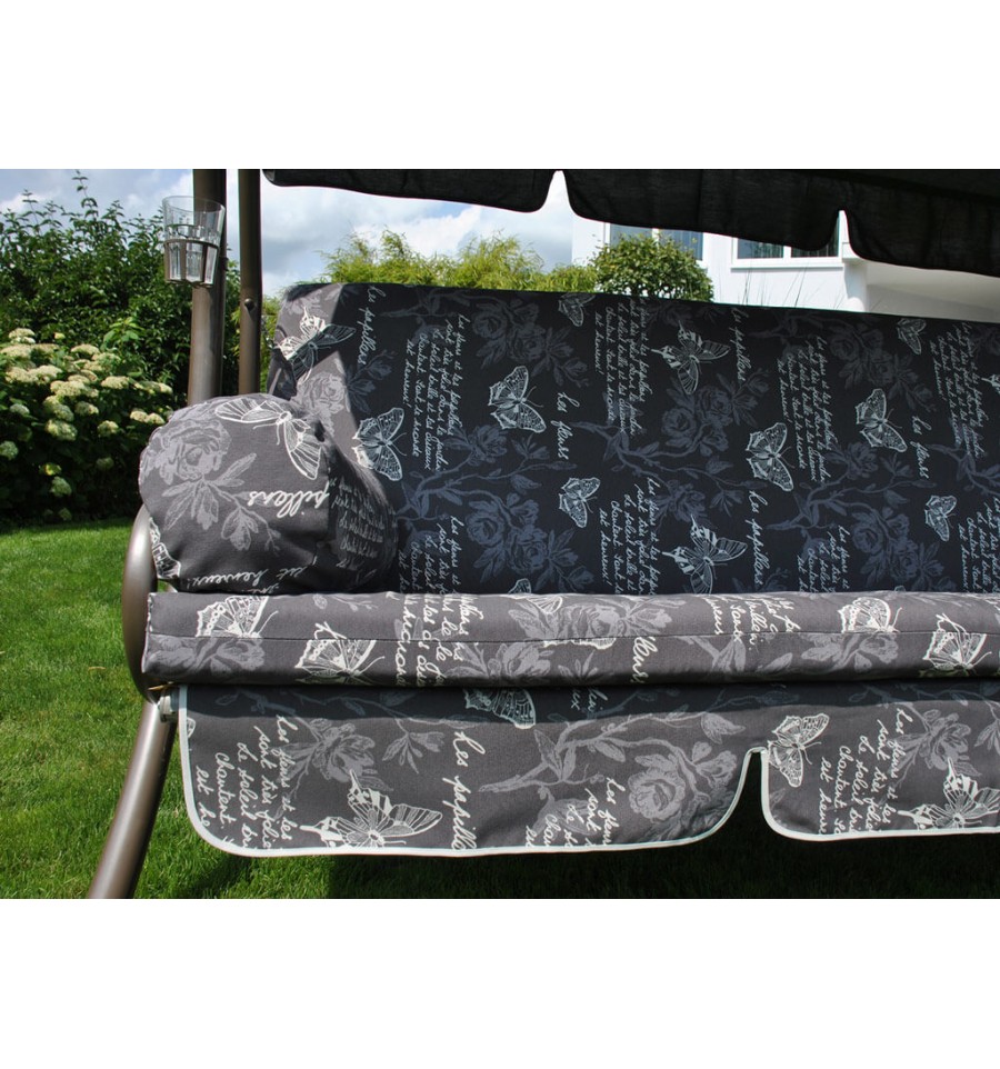 Inkl. sæde-/ryghynde i Design Schmetterling grau, 2 nakkeruller samt underlag med volant