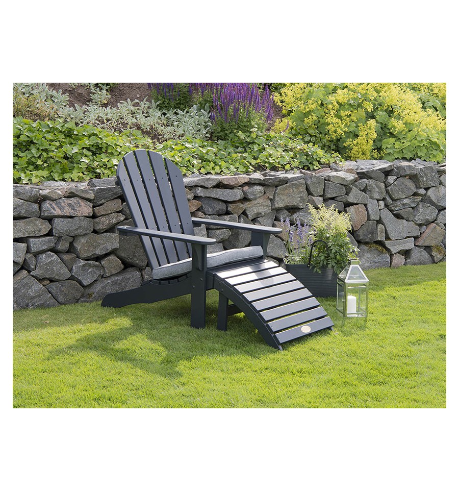Der Adirondack-Stuhl Tennessee ist inspiriert von den berühmten Adirondack Mountains in New York und verbindet klassisches Design mit hohem Komfort. Gefertigt aus dunkelgrauem FSC®-zertifiziertem schwedischem Kiefernholz wird der Stuhl inklusive Fußhocker und, beim Kauf des Sets, gratis Kissen geliefert. Perfekt für Garten, Terrasse oder Ferienhaus – langlebig, bequem und zeitlos schön.