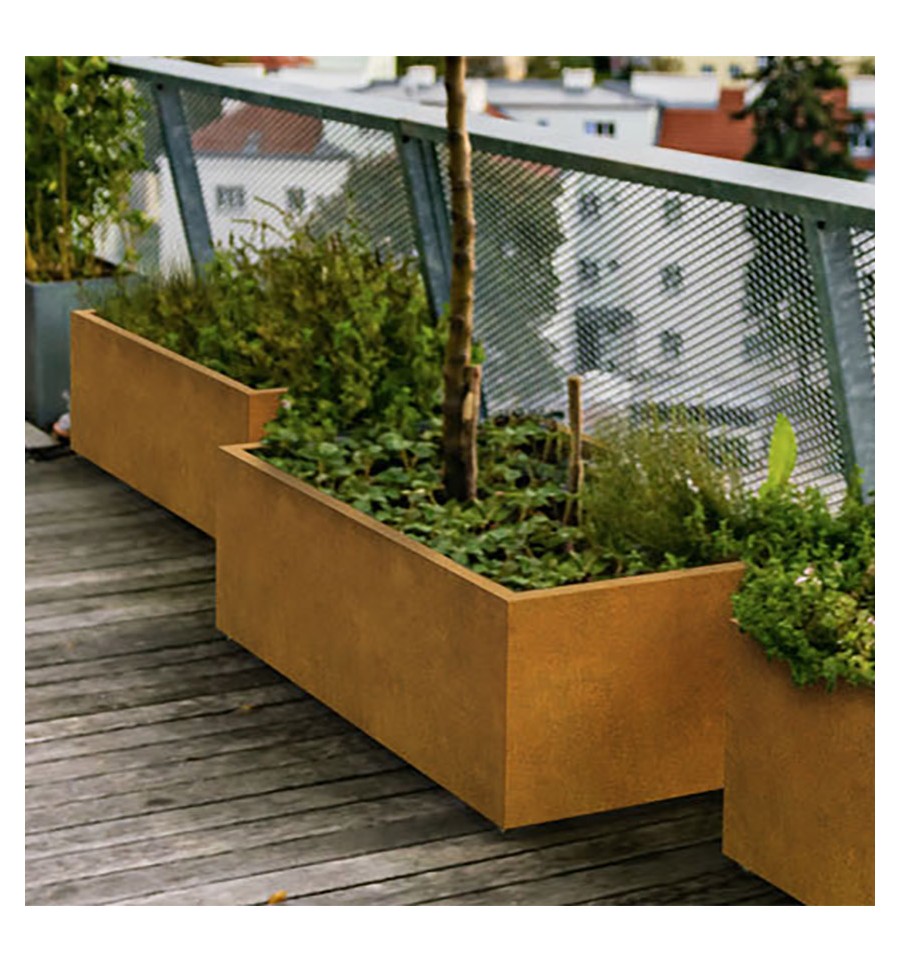 Hochbeet auf Rollen besteht aus 2 mm dickem Cortenstahl