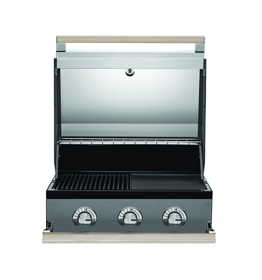 Dieser moderne australische Grill aus der 1500er-Serie kommt mit einem völlig neuen Design. Das Bedienfeld ist verborgen, wenn der Grill nicht verwendet wird. Die Frontplatte lässt sich herunterklappen, wenn der Grill verwendet werden soll, und dient so als zusätzliche Ablage für die Aufbewahrung. Das Modell wird sowohl für den Einbau als auch mit Unterschränken in Edelstahl geliefert. Der Deckel ist doppellagig und verfügt über eine integrierte Temperaturanzeige. Ihre Familie und Freunde werden die saftigen und knusprigen Gerichte lieben, die Sie auf diesem Grill zubereiten können.