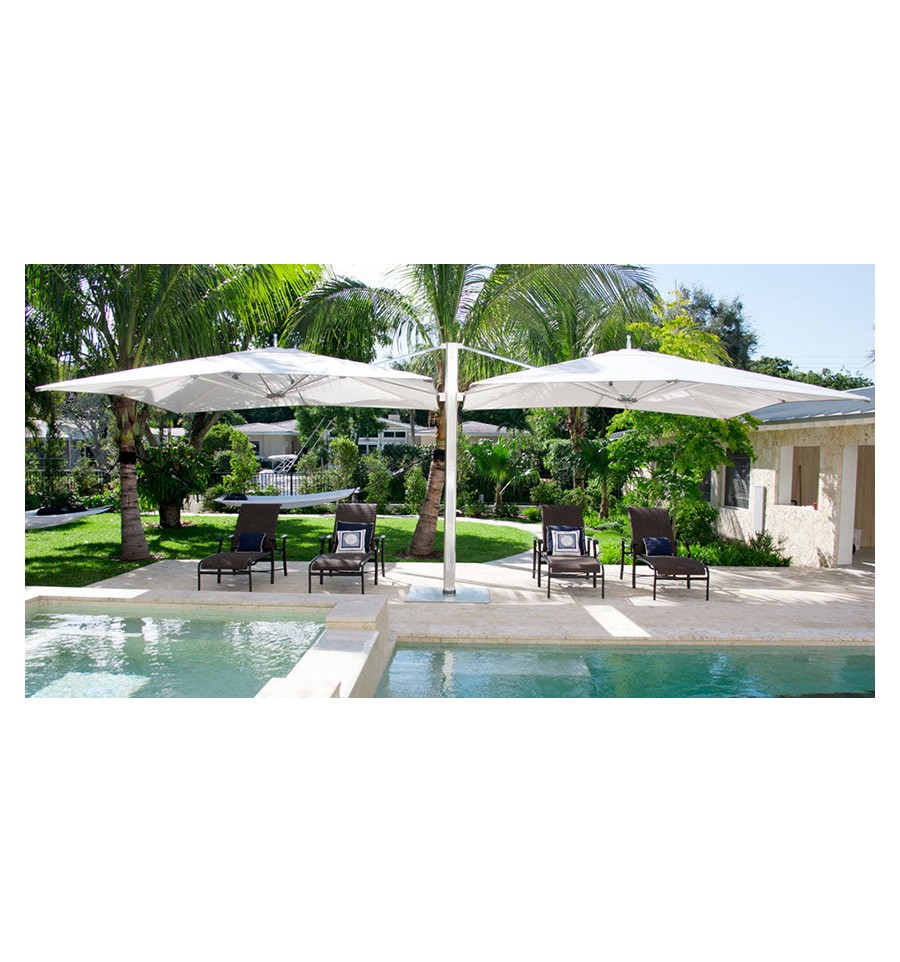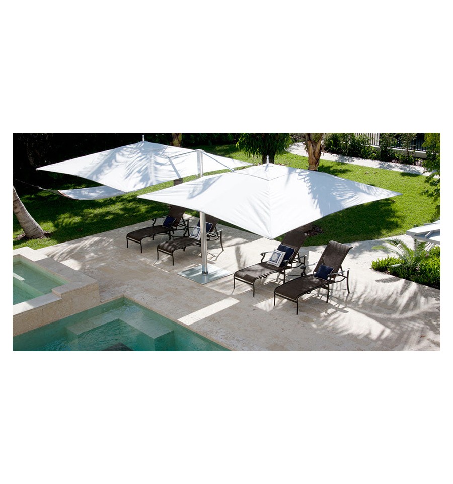 Im Ocean Master MAX Dual Ampelschirm von Tuuci® trifft Kunst auf Technik und verbindet beides auf harmonische Weise zu einer Schattenkomposition. Dieser exklusive Doppelschirm bietet großzügigen, luxuriösen Schatten, da auf diese Weise zwei einzigartige Outdoor-Wohnbereiche unter nur einem Schirm entstehen – Schatten ganz ohne Unterbrechung.