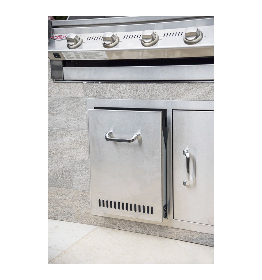Passend zu den Einbaugrills bietet BeefEater auch hochwertige Einbaukomponenten wie Türen und Schubladen an. Diese verfügen über eine Front aus Edelstahl und überzeugen durch ihre hohe Qualität und ihre edle Optik. Durch die vielen Verstaumöglichkeiten haben Sie Ihre Grillgeräte immer zur Hand.