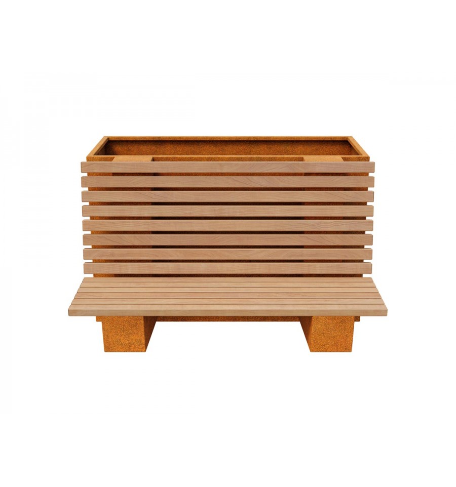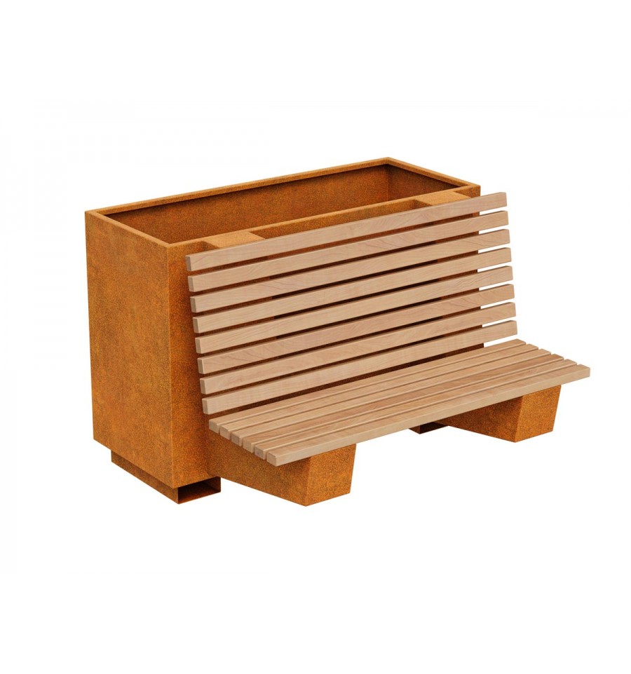 Die Topf-Bank besteht aus 2 mm dickem CORTENSTAHL