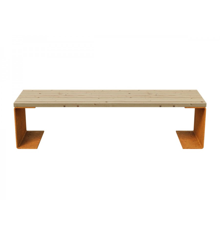 Die Garten-/Stadtbank CHAN 4 ist eine solide Gartenbank aus 8 mm Cortenstahl. Standardmäßig ist er mit einer Sitzfläche aus Fichtenholz ausgestattet, die zweifach mit unserem speziellen Mattlack lackiert wurde. Zur einfachen Montage im Untergrund ist die Bank mit Löchern ausgestattet.
