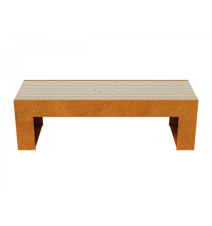 Die Gartenbank besteht aus 8 mm dickem CORTENSTAHL