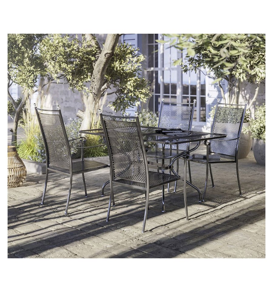 Die Royal Garden EXCELSIOR-Serie verbindet traditionelles Handwerk mit modernem Design. Aus massivem Eisen mit hochwertiger Thermosint-Beschichtung, die vor Witterung und Korrosion schützt. Die elegante eisengraue Farbe passt perfekt in Haus und Garten. Robust und langlebig, mit 5 Jahren Garantie. Verleihen Sie Ihrem Außenbereich mit EXCELSIOR einen luxuriösen Touch.