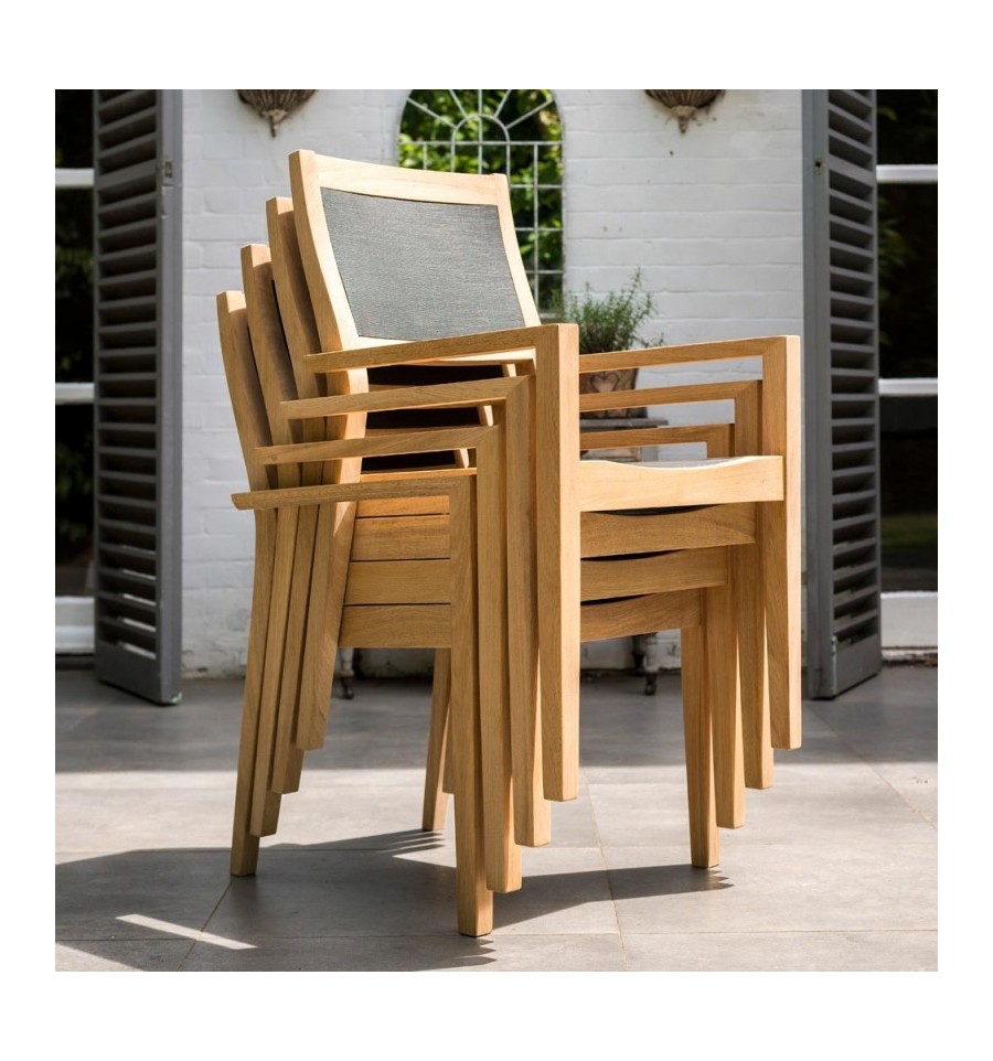 Alexander Rose Tivolti Stuhl mit Armlehnen aus Teakholz & Textilene
