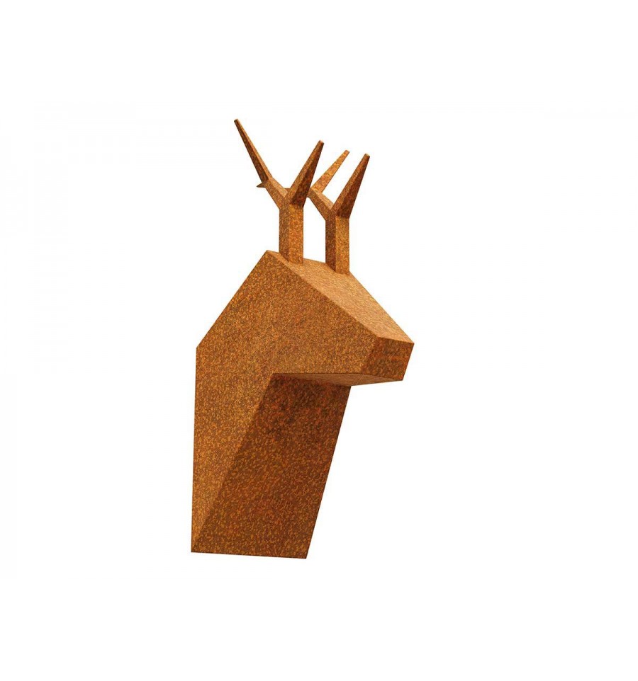 Die Gämsen-Figur besteht aus 2 mm dickem Cortenstahl. Auf der Rückseite befindet sich ein Loch zum Aufhängen an der Wand. Das moderne Design des Produkts und die perfekte, handgefertigte Verarbeitung machen es unmöglich, an ihm vorbeizukommen, ohne von dieser einzigartigen Handwerkskunst fasziniert zu werden.