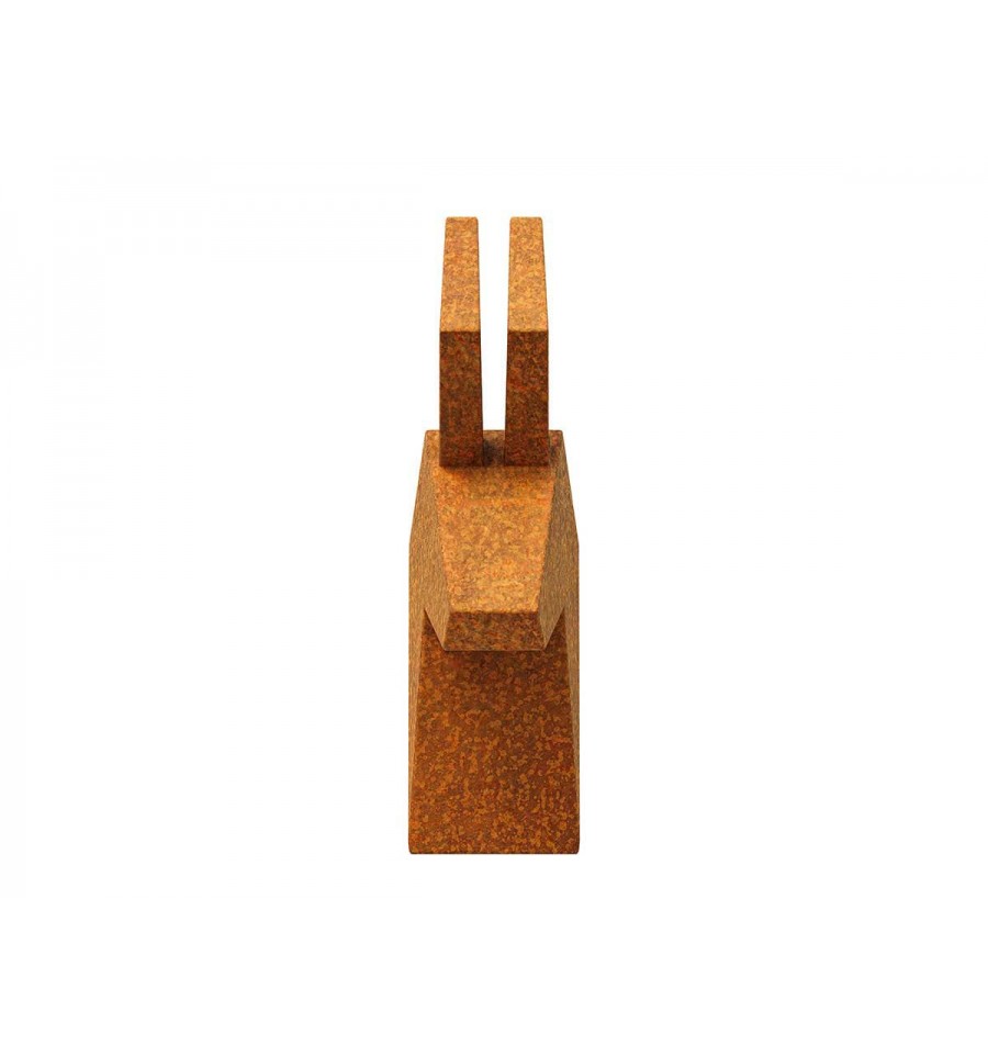 Die Ziegen-Figur besteht aus 2 mm dickem Cortenstahl. Auf der Rückseite befindet sich ein Loch zum Aufhängen an der Wand. Das moderne Design des Produkts und die perfekte, handgefertigte Verarbeitung machen es unmöglich, an ihm vorbeizukommen, ohne von dieser einzigartigen Handwerkskunst fasziniert zu werden.
